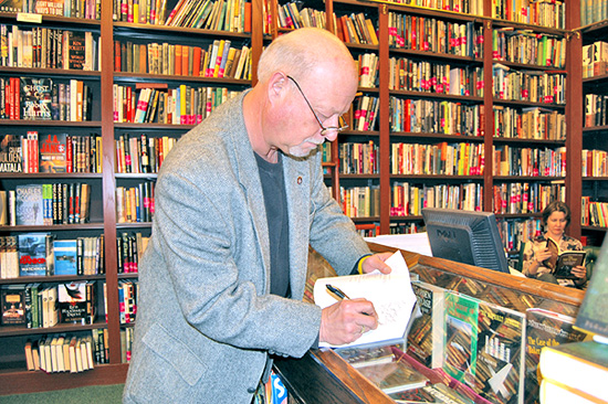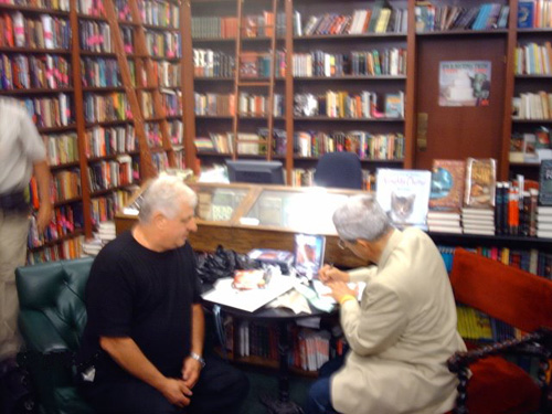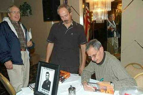 Joe Sanchez signing a copy of his bookTrue Blue for Rich Weisel. |